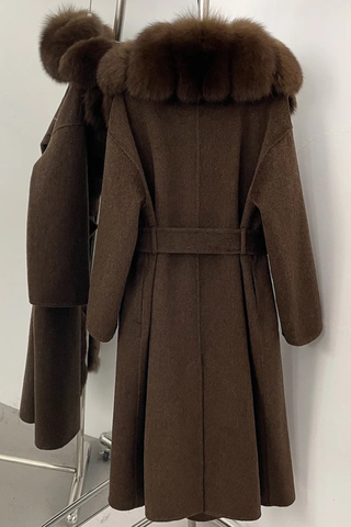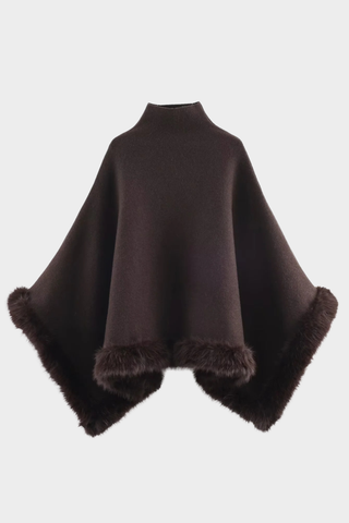 Long Sleeve Knitted Jacket with Faux Fur Trim – Tie-Front Design