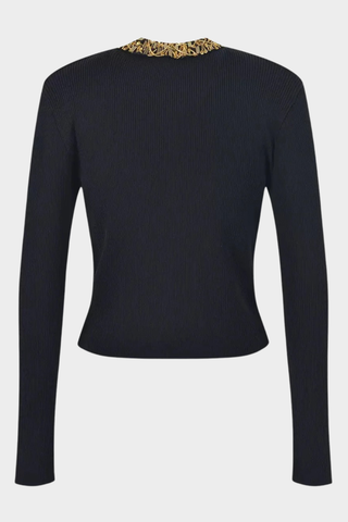Luxe Feather Cuff Wool Cardigan - Grey Mohair French Knit Top
