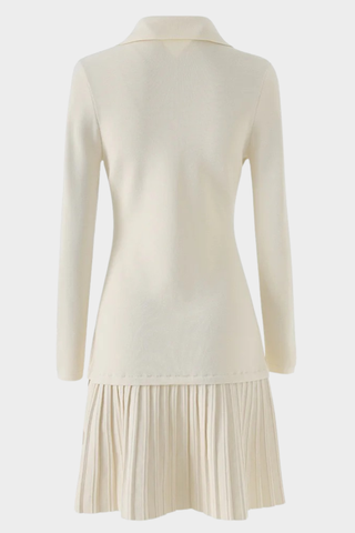Shimmer Knit Mid-Long Dress with Three-Quarter Sleeves and Front Buttons