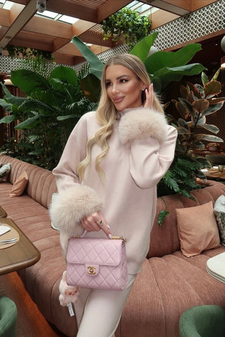 Faux Fur Trim Turtleneck Knit Set – Long Sleeve Top & Wide-Leg Pants