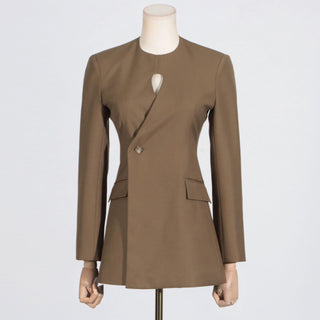 Elegant High-End Woven Long Sleeve Suit Jacket with Statement Buttons