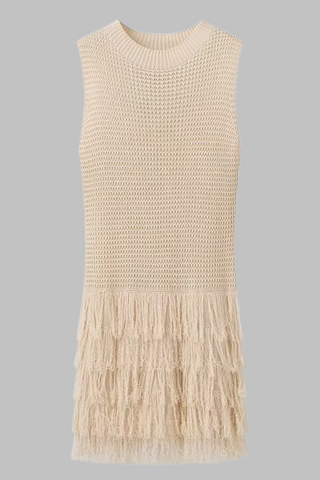 Solid Tassel Layered Knit Mini Dress – Sleeveless Round Neck Boho Chic