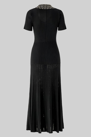 Short Sleeve Pearl Collar Ribbed Knit Midi Dress – Button Front