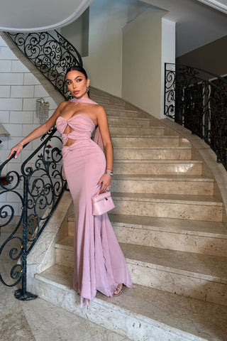 Blush Halter Cutout Maxi Dress – Sheer Chiffon with Crystal Rings