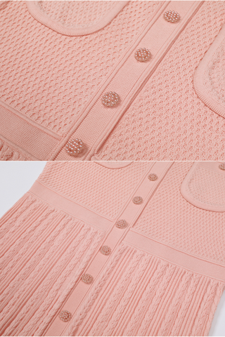 Elegant Sleeveless Textured Knit Long Dress with Button Front and Fitted Waistline