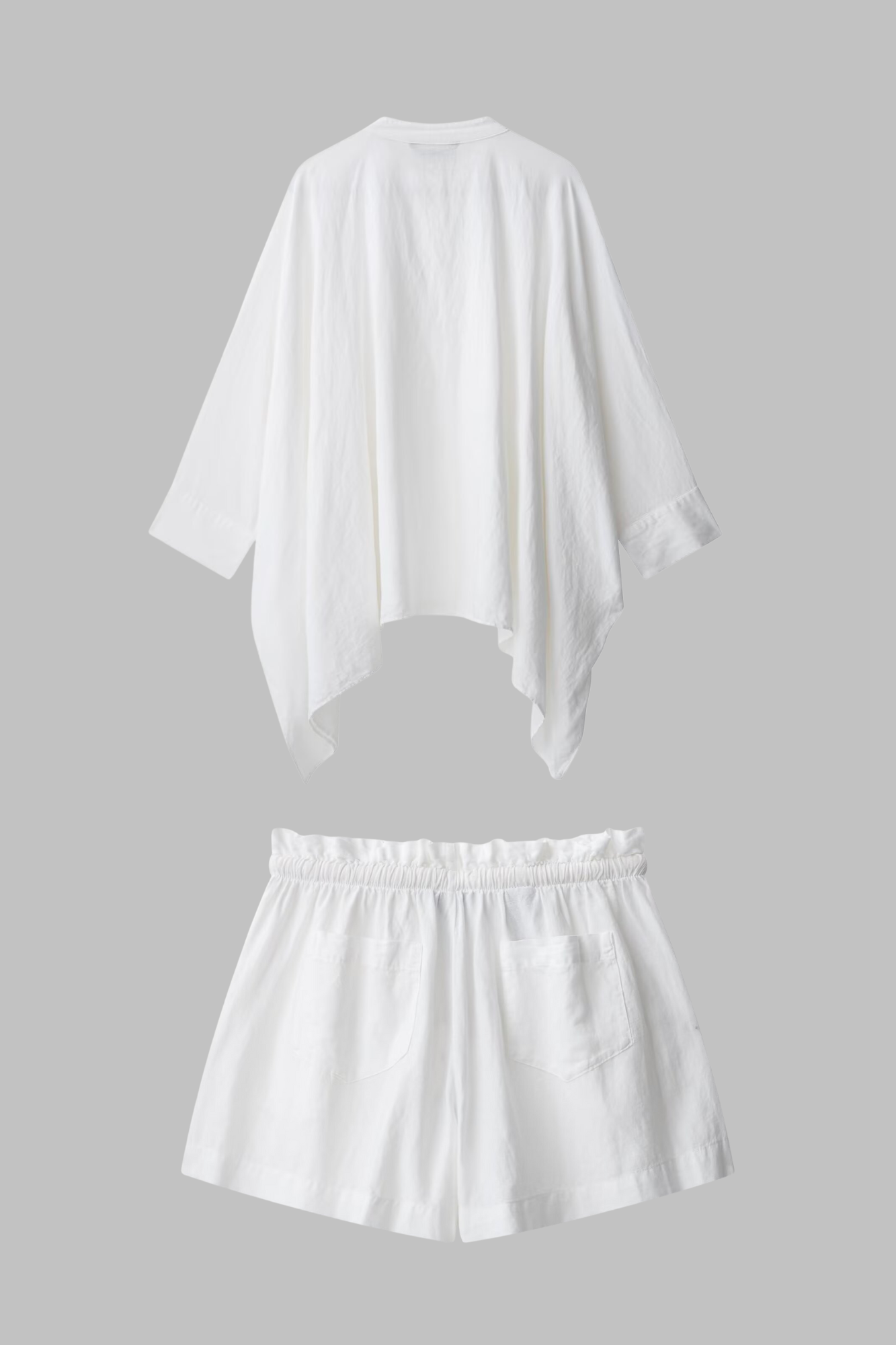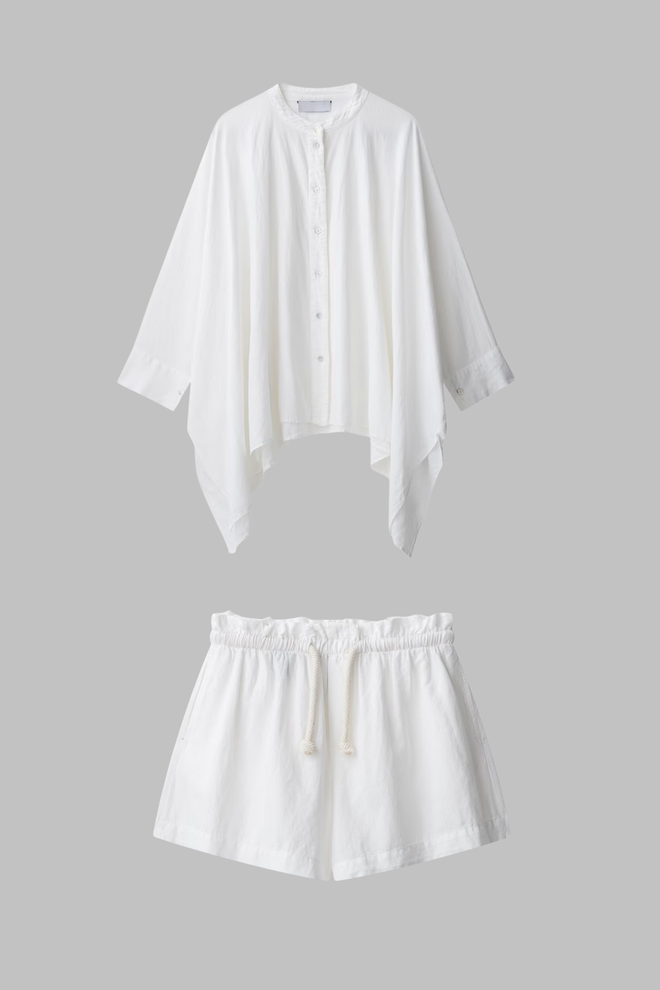 Elevate your summer wardrobe with this Luxe Breeze White Co-ord Set, featuring an oversized button-down shirt with an asymmetrical hem and relaxed fit, paired with high-waist drawstring shorts. Crafted from a soft, breathable cotton-linen blend, this lightweight set offers effortless elegance, comfort, and versatility—perfect for casual outings, beach cover-ups, or relaxed resort days.