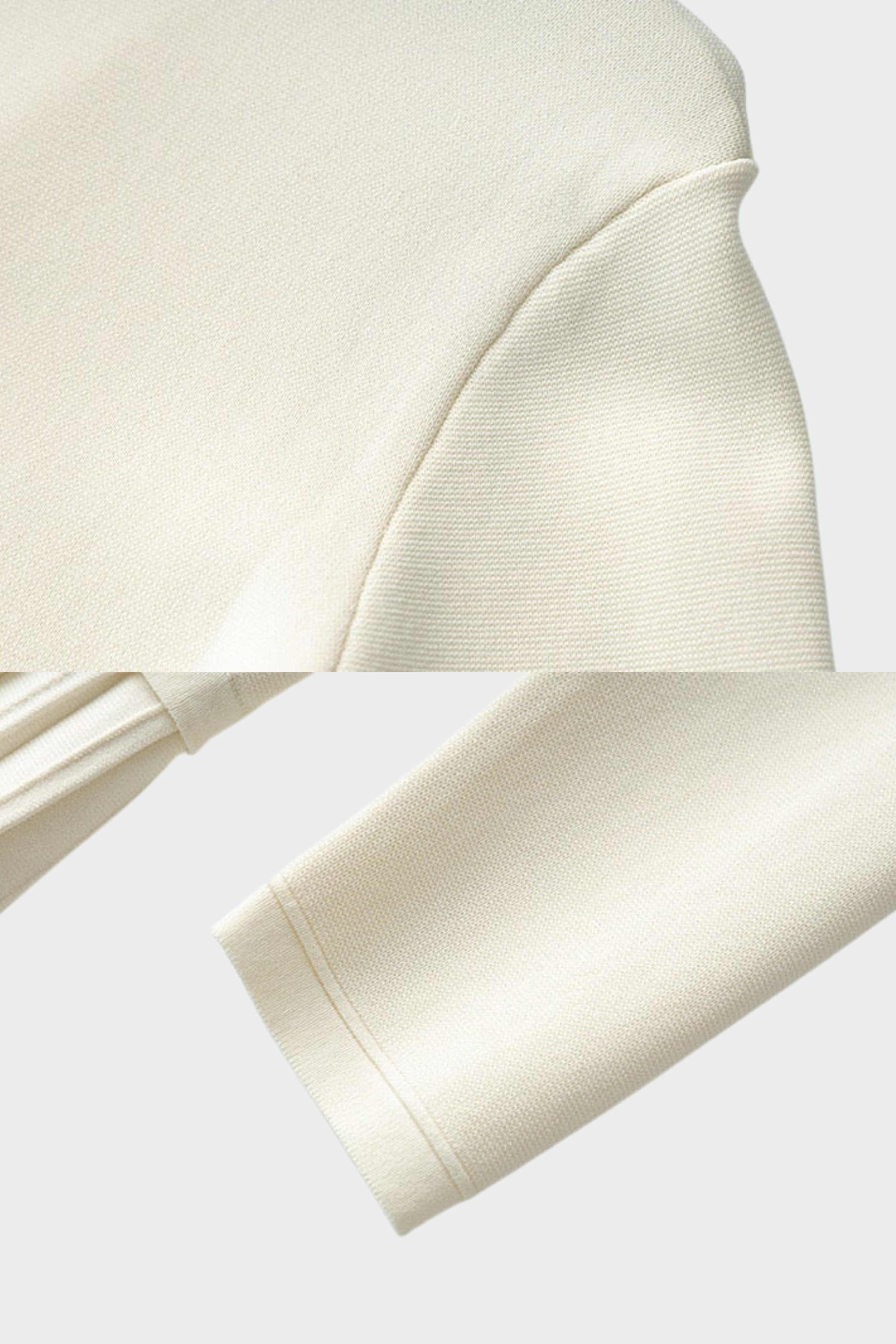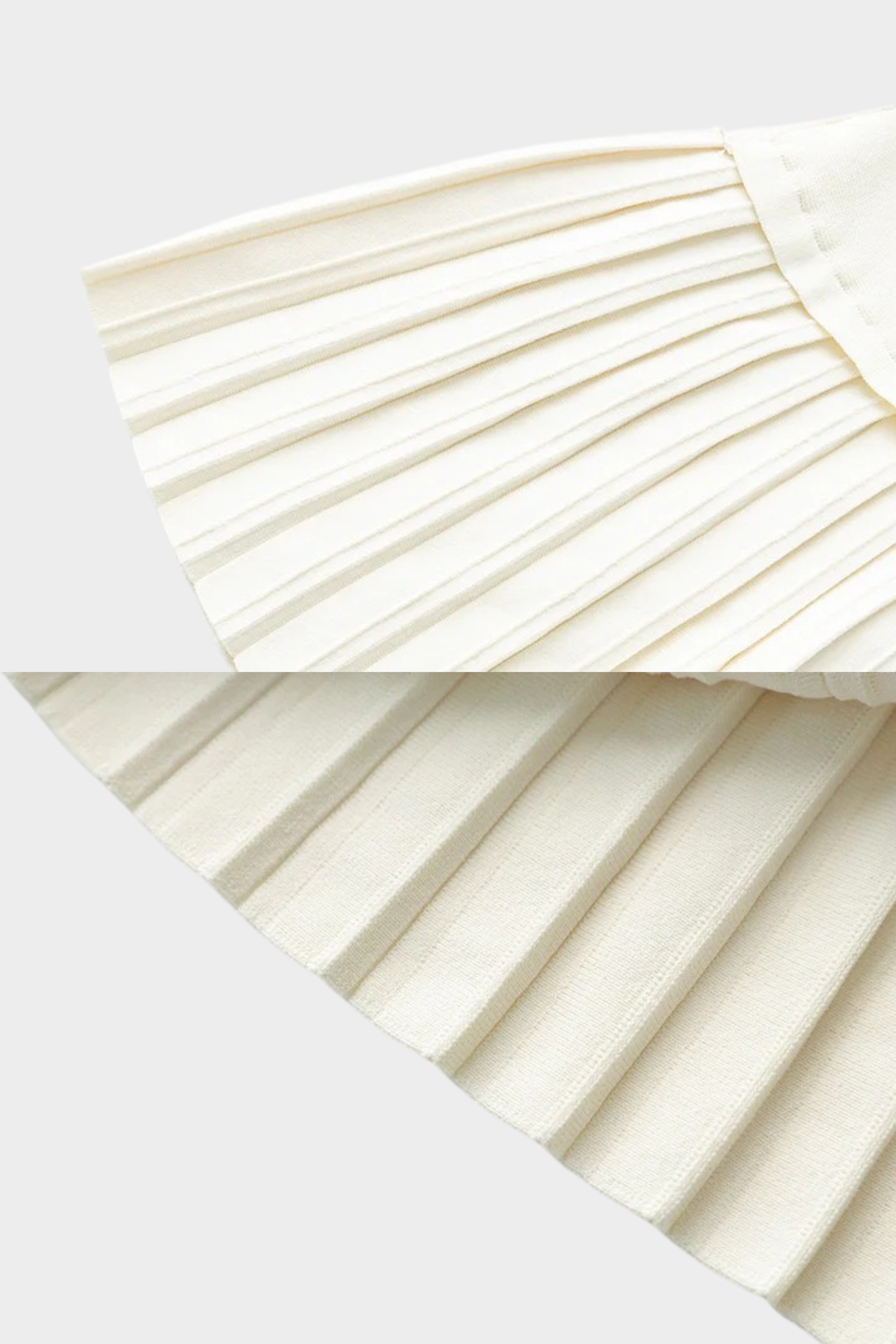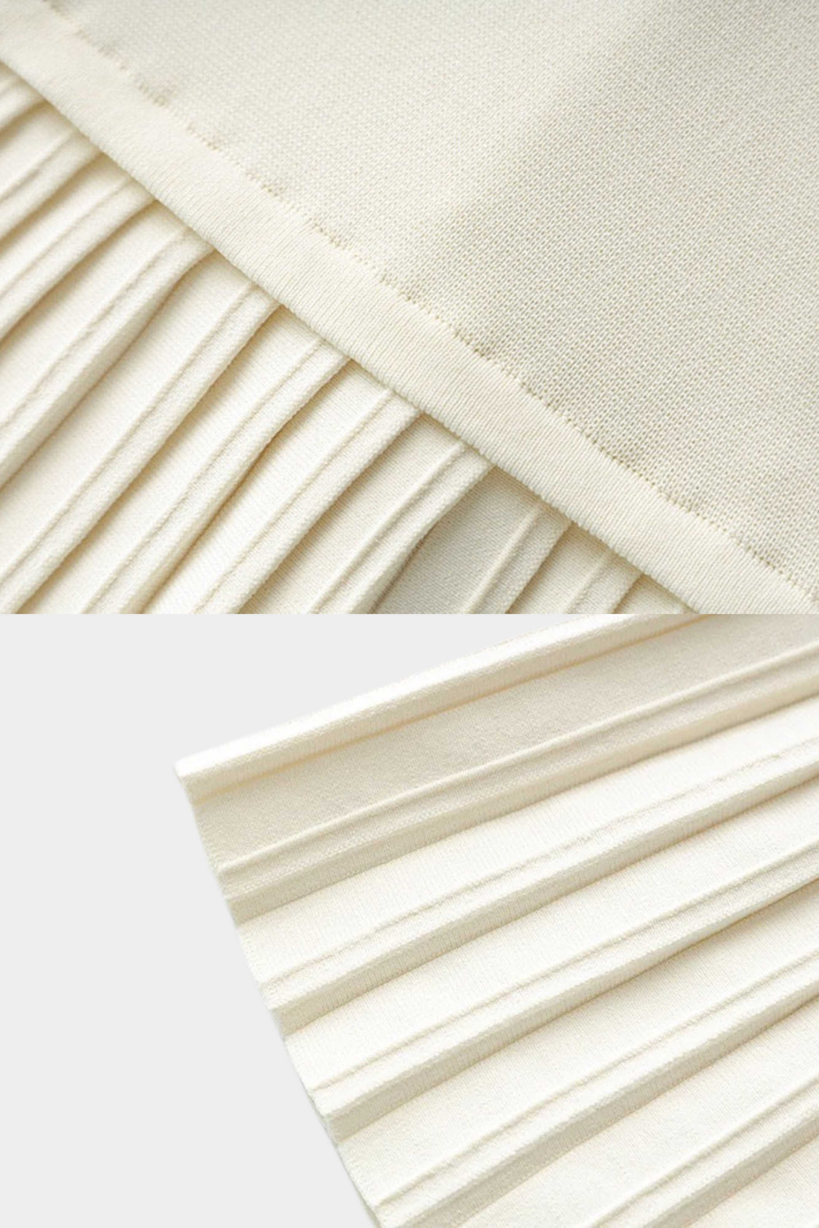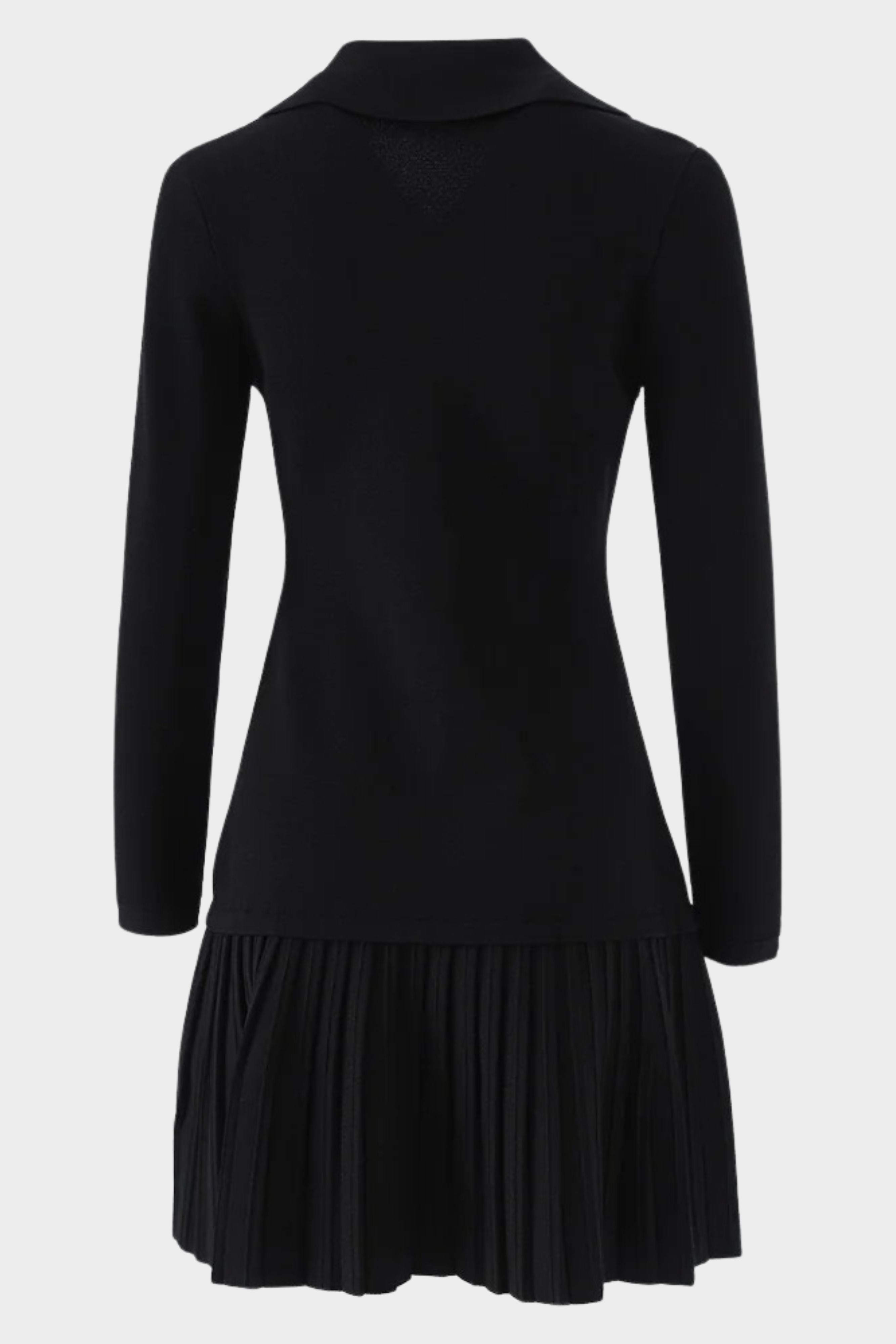 The lower portion flows into a pleated skirt panel, creating gentle movement and a balanced contrast to the structured top. Crafted from a smooth knit fabric, it offers comfort while maintaining a clean, elevated look.