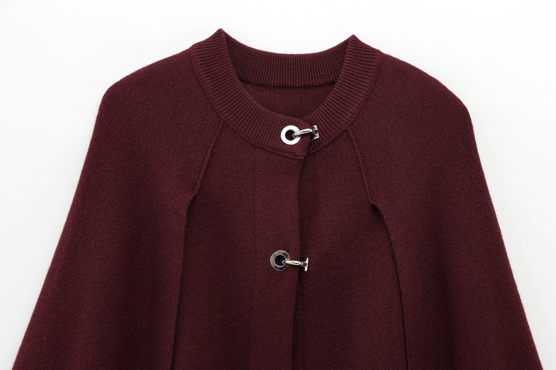 Keep warm in style with this elegant wool-blend cape. Designed with a ribbed collar and secure metal buckle closures, it offers a soft, draped fit that layers effortlessly over any outfit. A timeless, cozy piece perfect for everyday wear or polished winter looks.