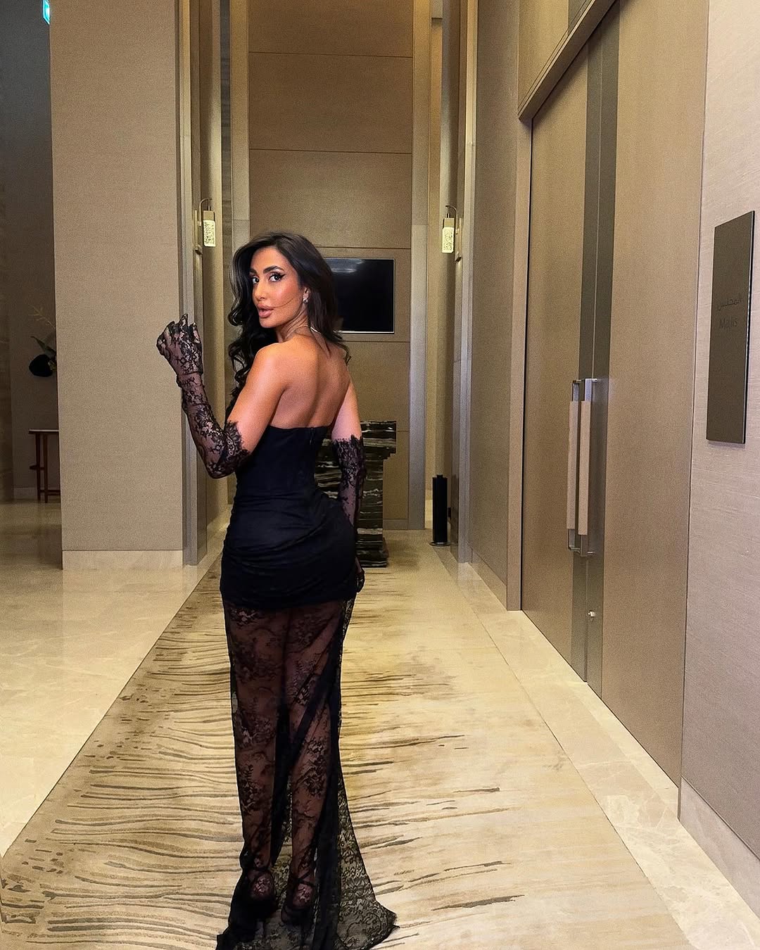 Turn heads in this bold and elegant strapless gown, crafted from luxe black lace with intricate beaded accents. The body-hugging silhouette features a high slit and sheer lace train for a dramatic flair. Comes with matching lace gloves for a complete glam look. Perfect for evening events, galas, or special occasions.
