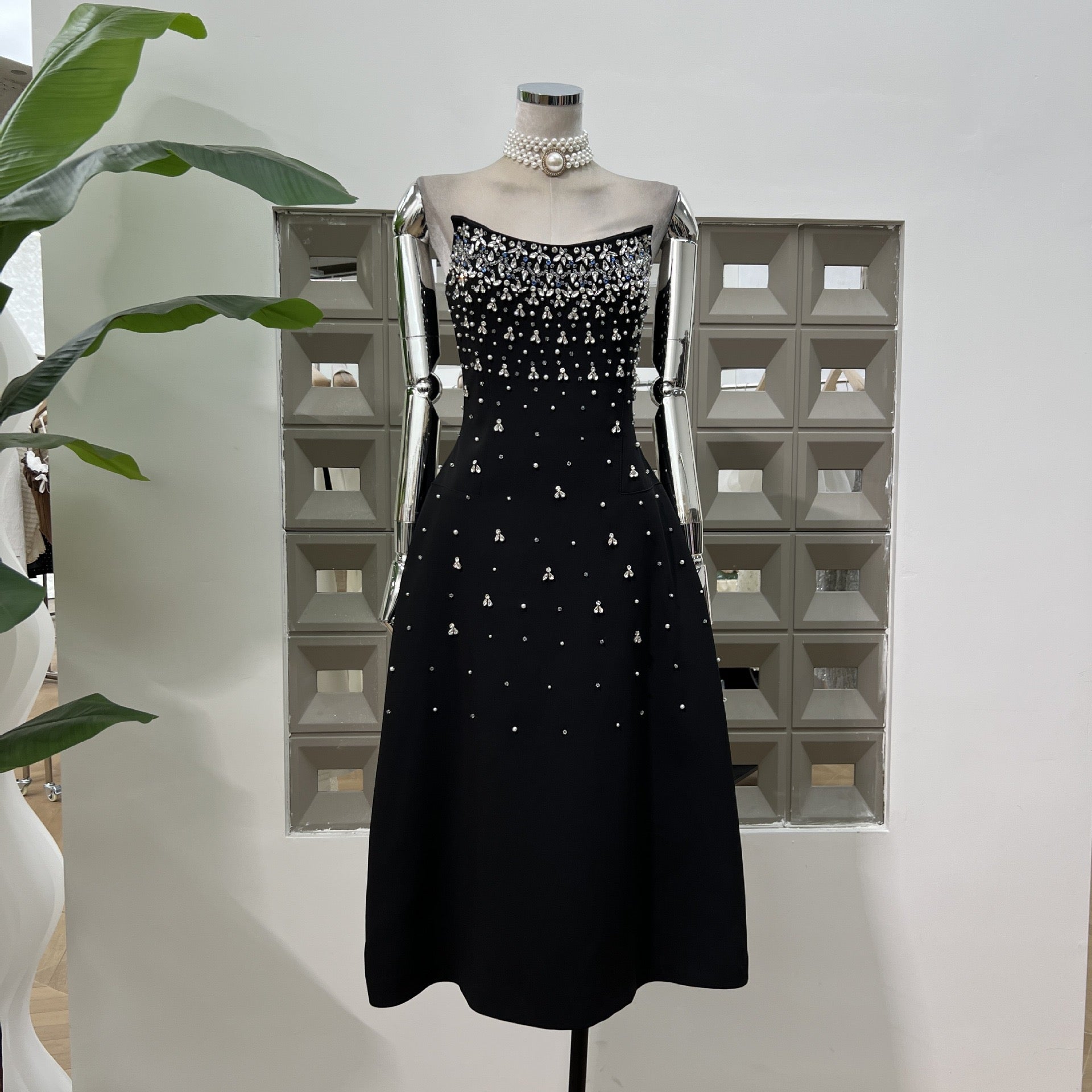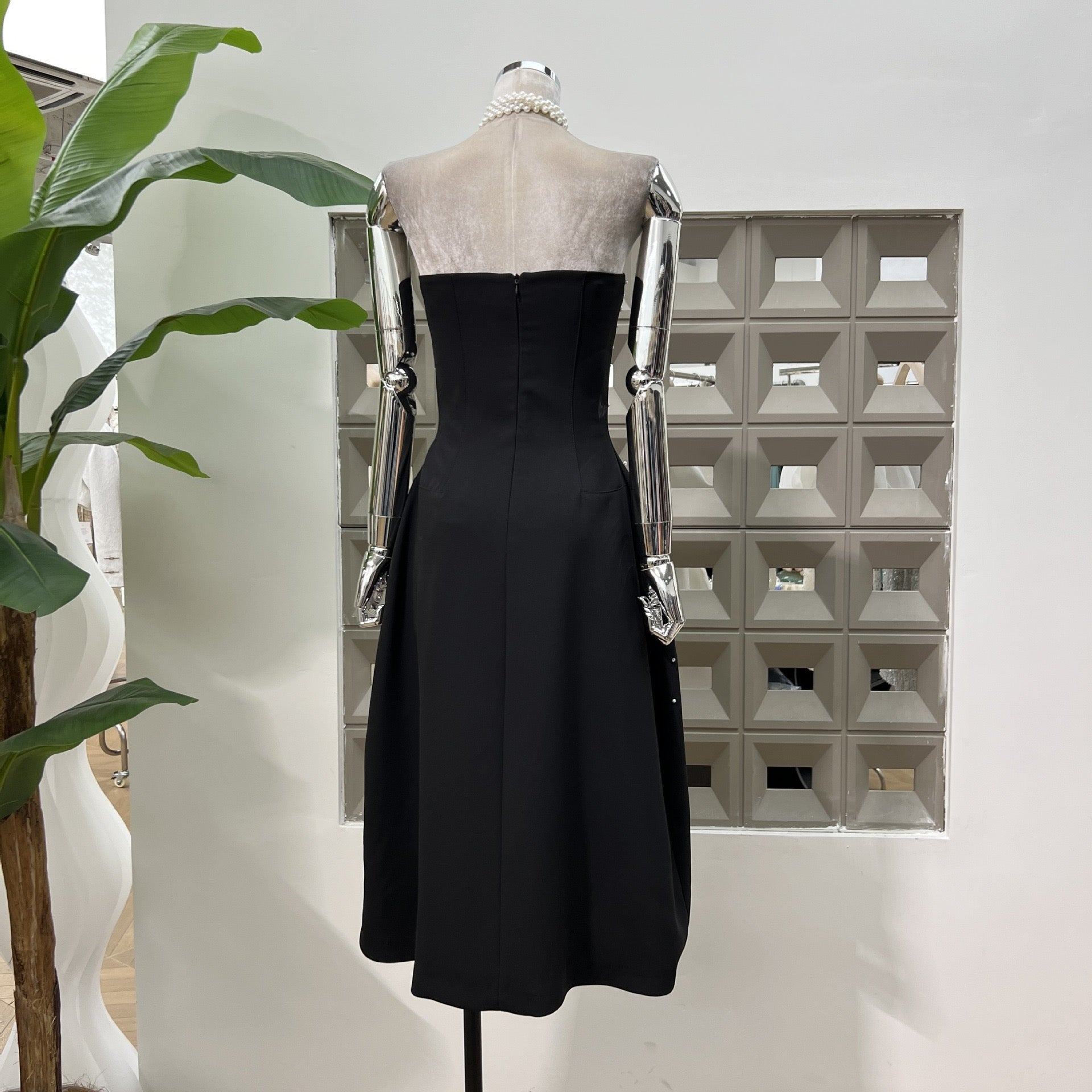 The fitted waist flows into a graceful A-line midi skirt, creating a feminine, flattering silhouette that’s perfect for evening occasions, cocktail parties, or elegant celebrations. Crafted from premium smooth fabric, it offers both comfort and sophistication, making it your go-to piece for any special event.