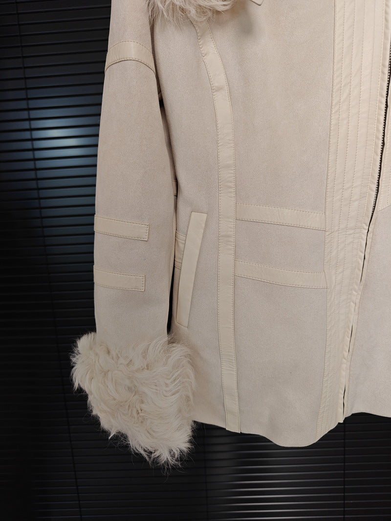 Effortlessly stylish and cozy, this Shearling Trim Suede Jacket brings together soft textures and timeless design. Made from smooth suede and lined with plush shearling, it feels warm yet refined — perfect for chilly days and elevated casual looks.