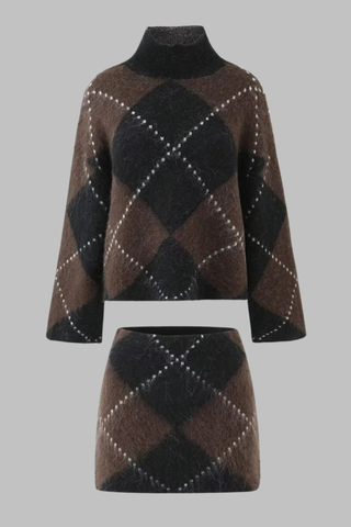 Textured Knitted Peplum Cardigan and High-Waist Skirt Set with Belt