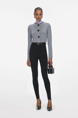 Butter Yellow Long Sleeve Cable Knit Cardigan with Crystal Collar and Pearl Buttons