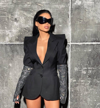 Two-Tone Blazer & Skirt Set – Black and White Contrast Tailored Jacket with Mini Skirt