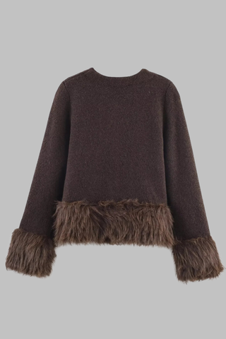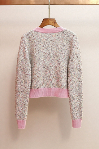 Cropped Knit Cardigan with Contrast Pink Pockets and Round Neck