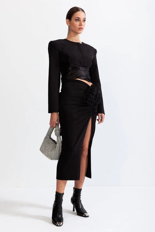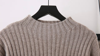 Ribbed Knit Two-Piece Set – Oversized Sweater with Button-Cuff Sleeves & High-Waist Midi Skirt