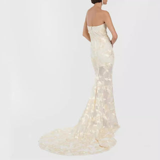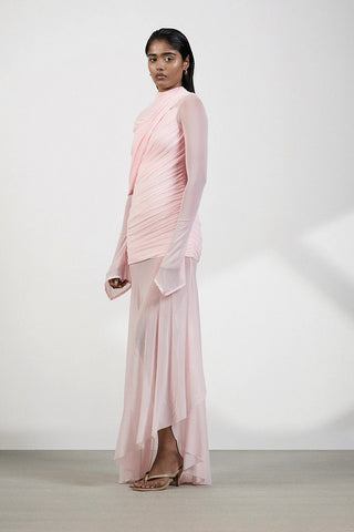 Sculpted High-Neck Bandage Evening Long Dress with Dramatic Satin Sleeves