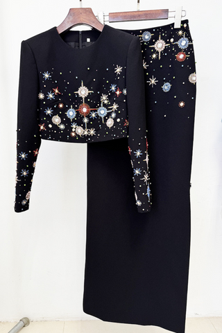 Spark Embellished Long Sleeve Crop Top & High-Slit Maxi Skirt Set