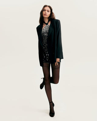 Pleated Chiffon Mini Dress with Long Sleeves and Crystal Embellished Waist
