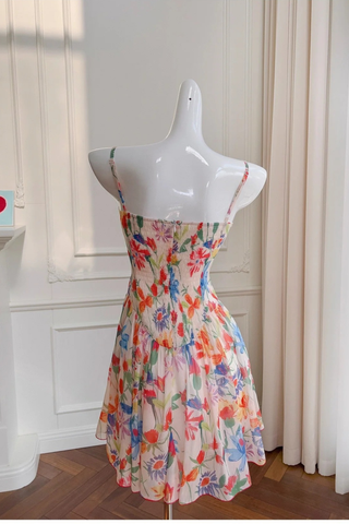 Floral Chiffon Mini Dress with Ruched Bust, Fit-and-Flare Skirt, and Inner Shorts