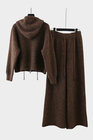 Cozy Fuzzy Knit Hoodie & Wide-Leg Pants Set - Soft Two-Piece Loungewear