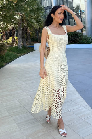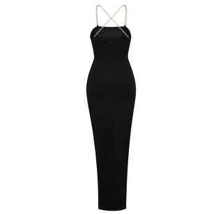 Crystal Embellished Sleeveless Crochet Long Dress with Lining