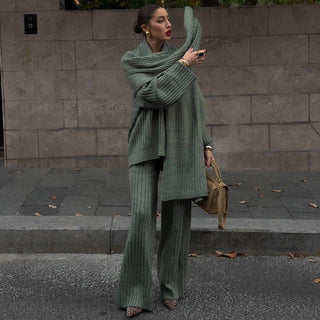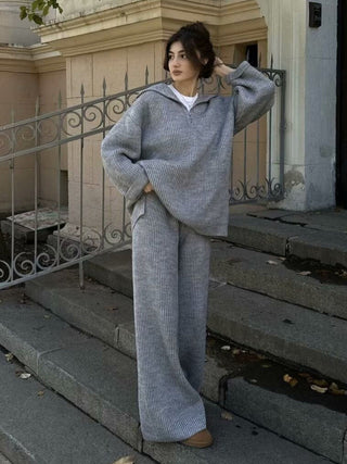 Cozy Ribbed Knit Set – Oversized Pullover & High-Waist Trousers