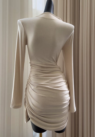 Cream Off-Shoulder Mesh Long Dress with Adjustable Sheer Overlay