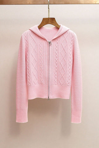 Cropped Knit Cardigan with Contrast Pink Pockets and Round Neck