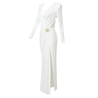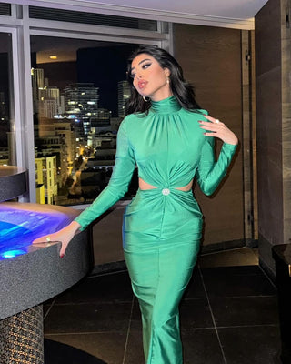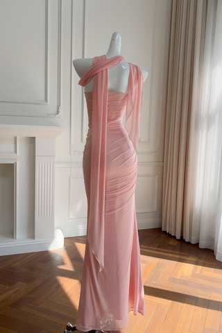 Dusty Rose Draped Mesh Strapless Set with Convertible Scarf & Fishtail Maxi Skirt