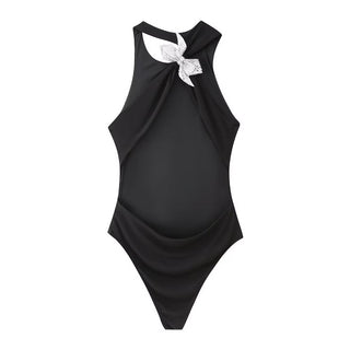 Double-Layered Ruched Backless Mini Dress with Spaghetti Straps