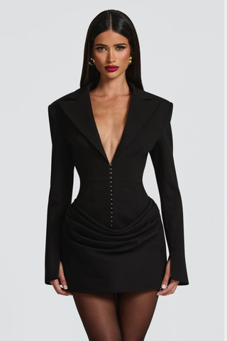 Draped Blazer Mini Dress – Tailored Long Sleeve Tuxedo Style