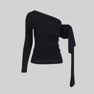 Elegant One-OffShoulder Long Sleeves- Tall Dress with Floral Detailing