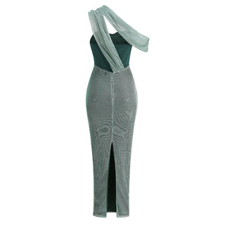 Elegant Sleeveless Bandage Mesh Long Dress Evening Gown with Scarf Detail