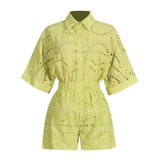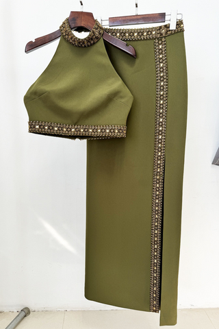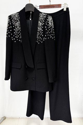 Embellished Crystal-Studded Tailored Blazer & Wide-Leg Trousers Set