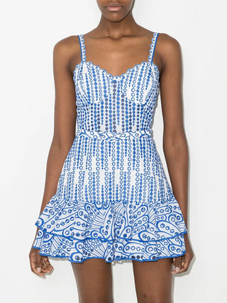Embellished Crepe Red Sleeveless Mini Dress with Mesh Detail