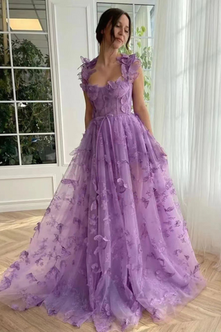 Flutter Bloom Butterfly Embroidered Sleeveless Slit Long Dress