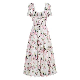 Light Blue and White Patterned Knitted Sleeveless Mini Dress with Square Neckline