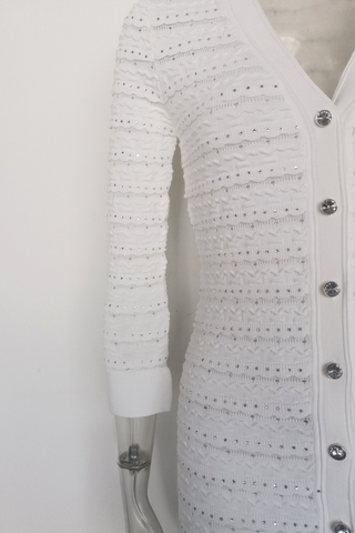 Long Sleeve Textured Knit Long Dress with Button Front & Rhinestone Embellishments