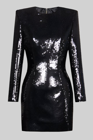 Long Sleeve Mini White Dress with Pearl-Embellished High Neck and Cuffs