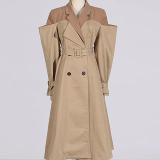 Long Sleeve Khaki Trench Coat with Belt - Slim Fit Women's Outerwear