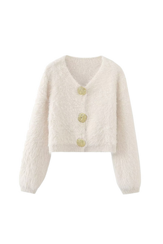 Long Sleeve Knit Cardigan with Round Neck and Decorative Mixed Buttons
