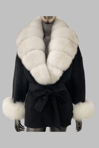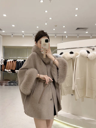 Luxury Double-Sided Wool Long Coat with Detachable Fur Sleeves