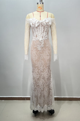 Off-Shoulder Long Sleeve Lace Mermaid Bridal Dress with 3D Floral Appliqué