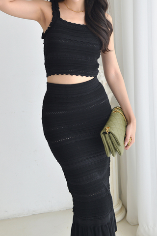 Black Knit Two-Piece Set knit Crop Tank Top & High-Waist Ruffle Hem Pencil Skirt