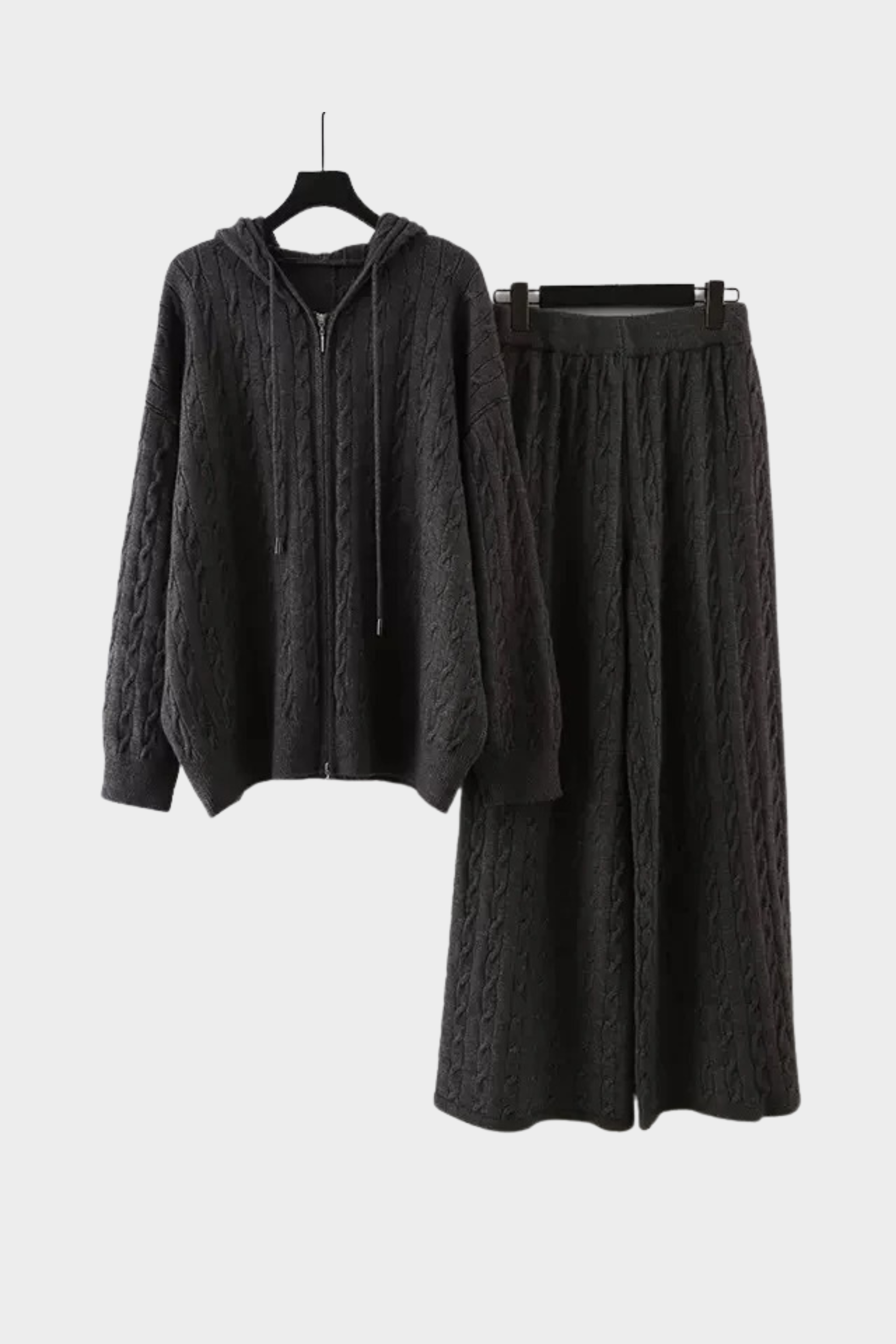 Cable-Knit Hoodie & Wide-Leg Lounge Set – Cozy, Soft & Stylish