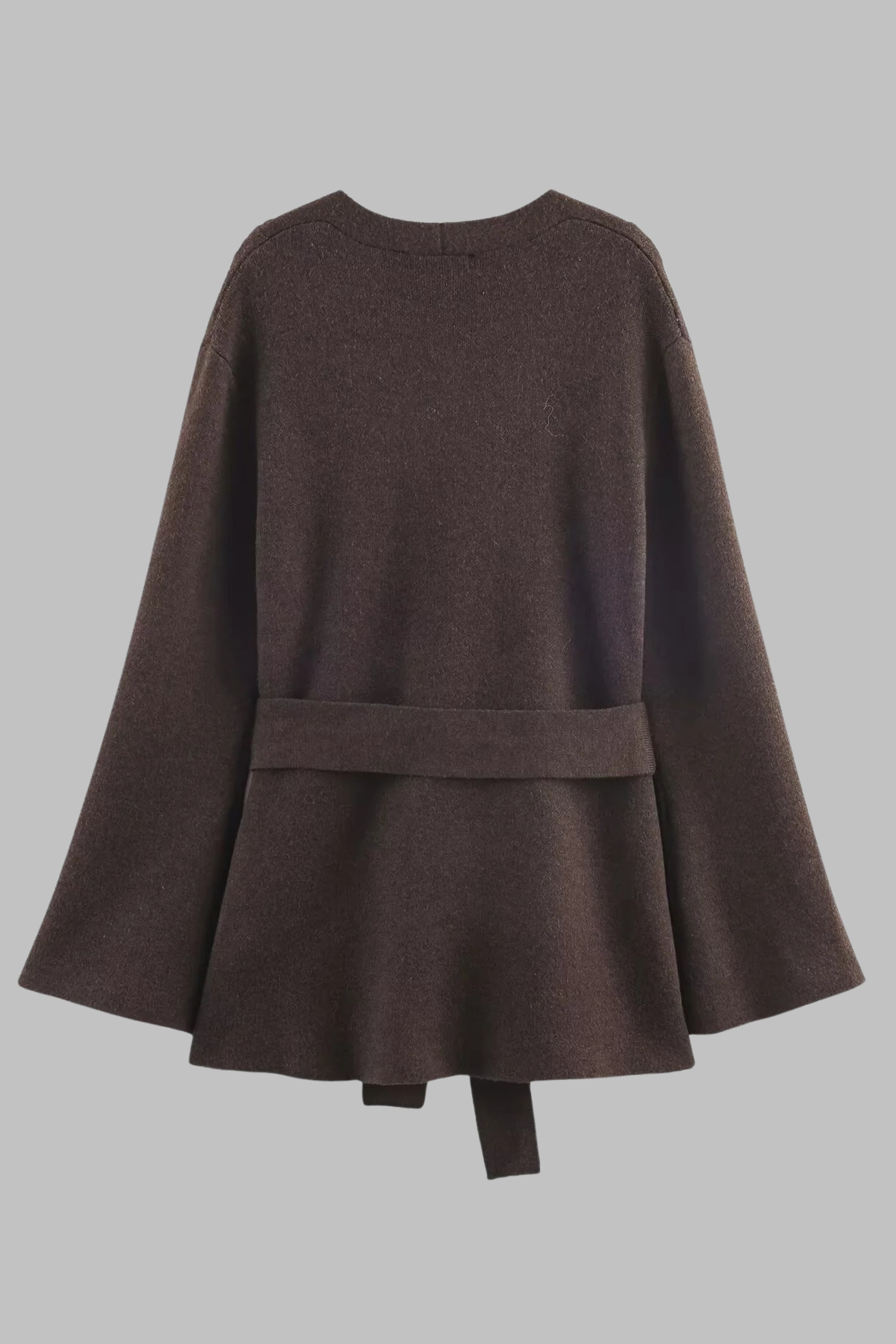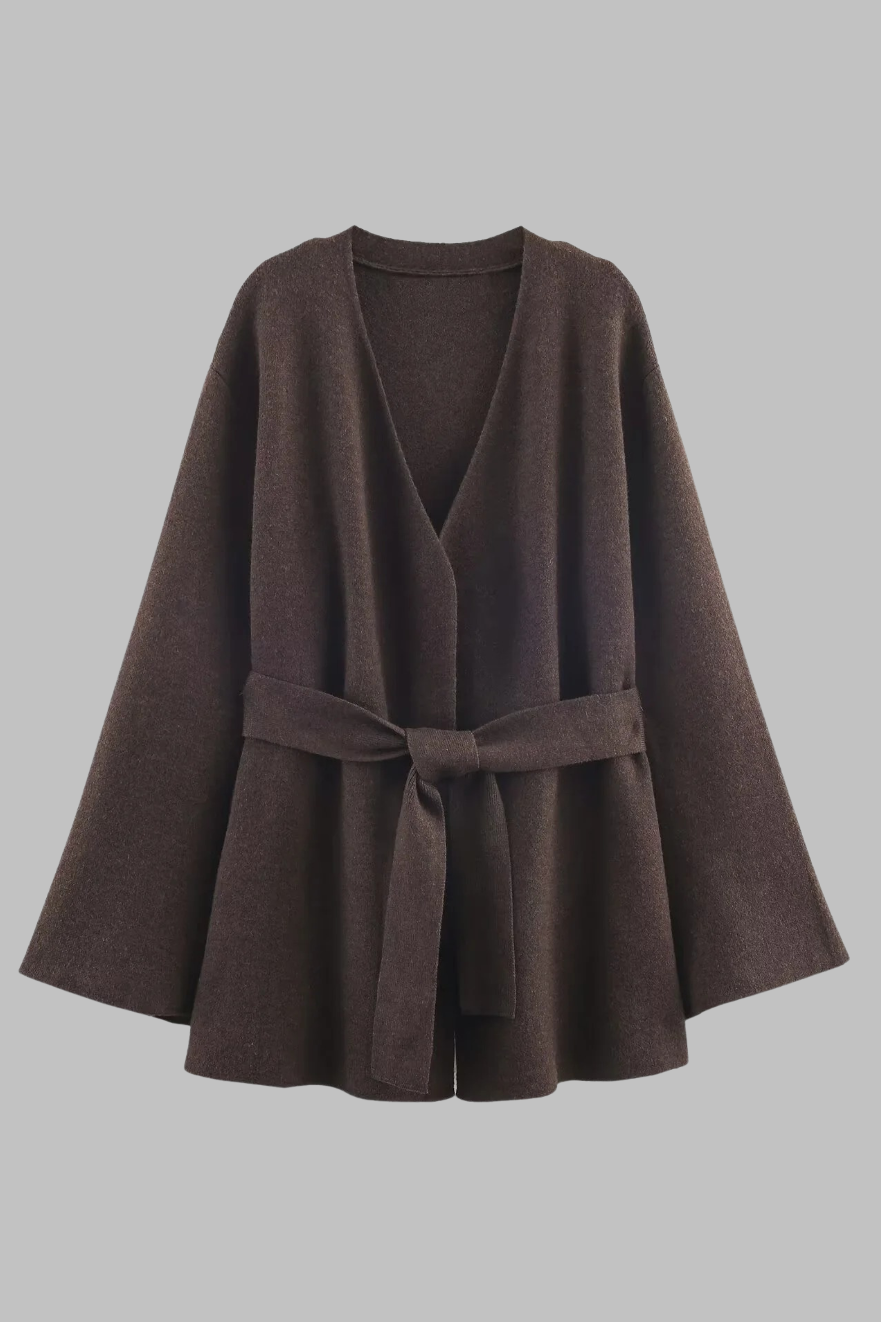 Cozy Belted Knit Cardigan – Wool Blend, Open Front, Long Wide Sleeves