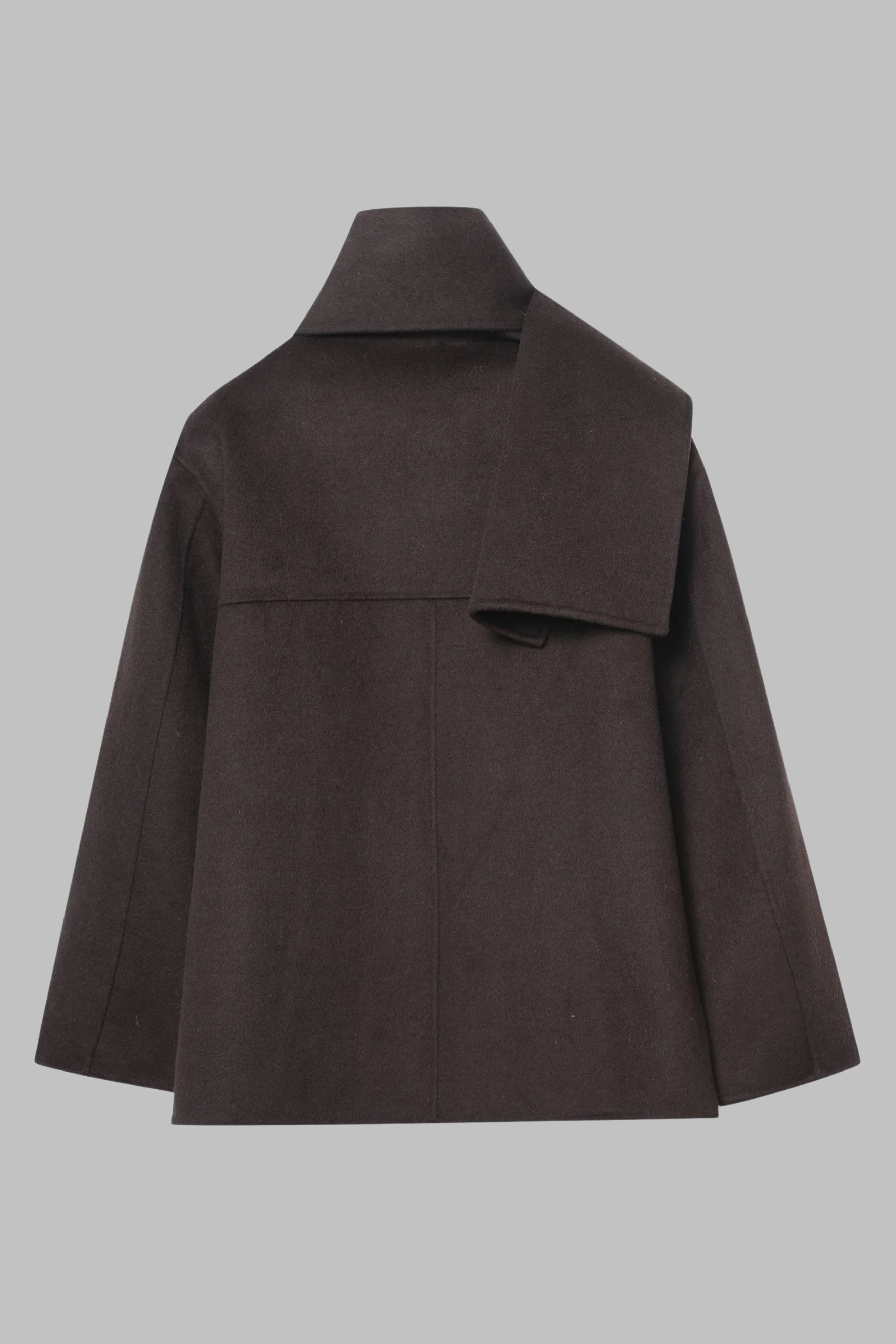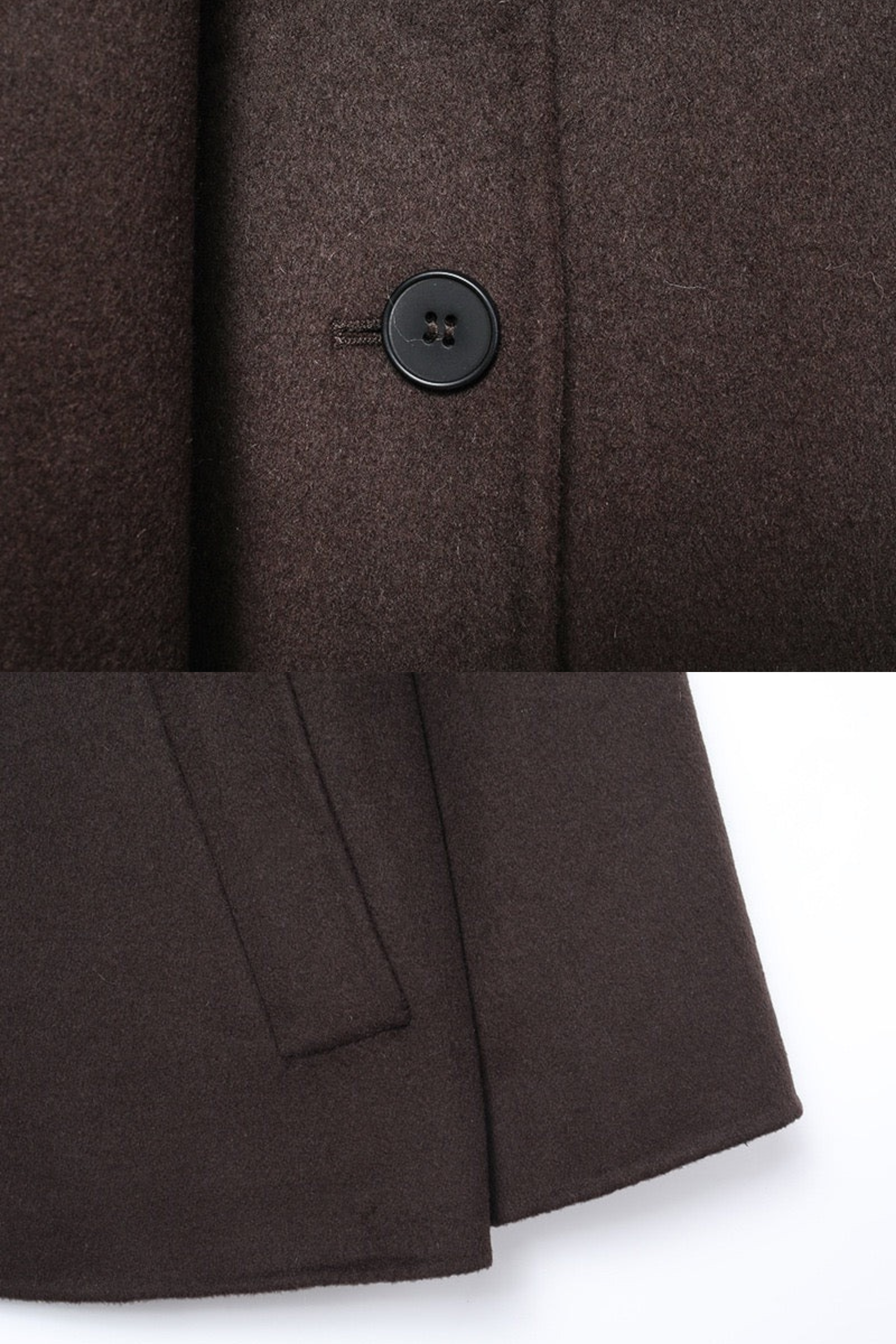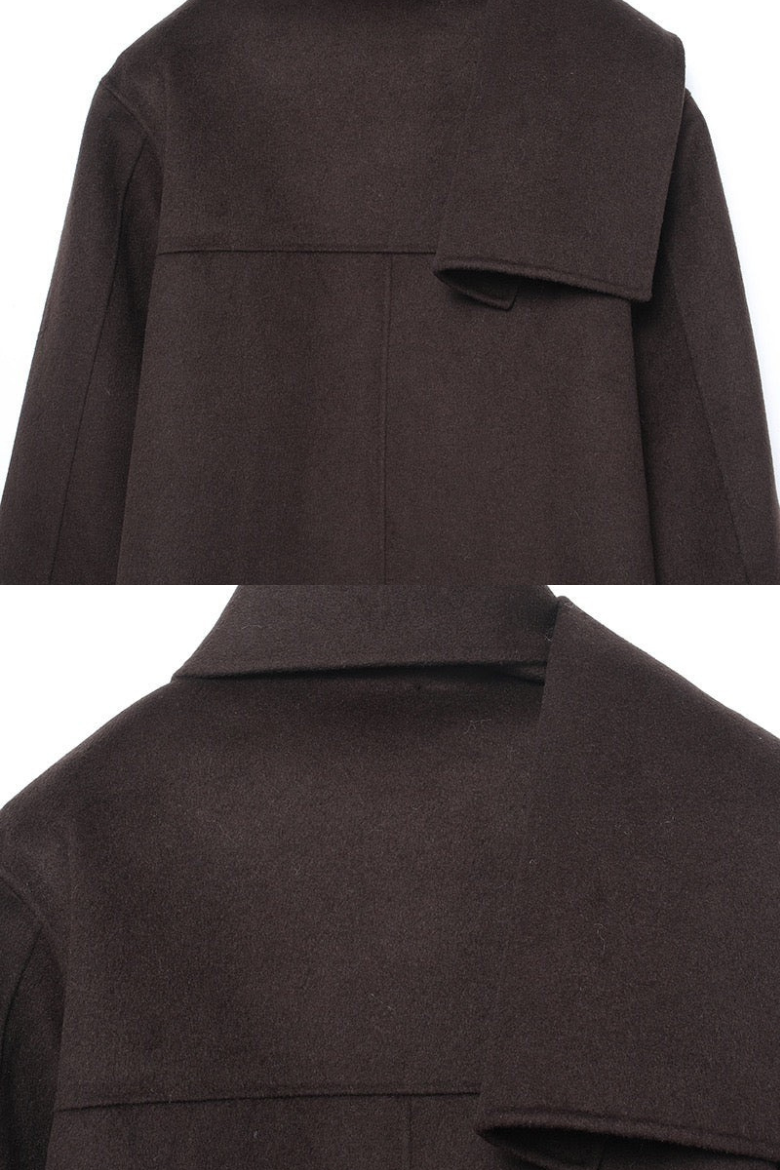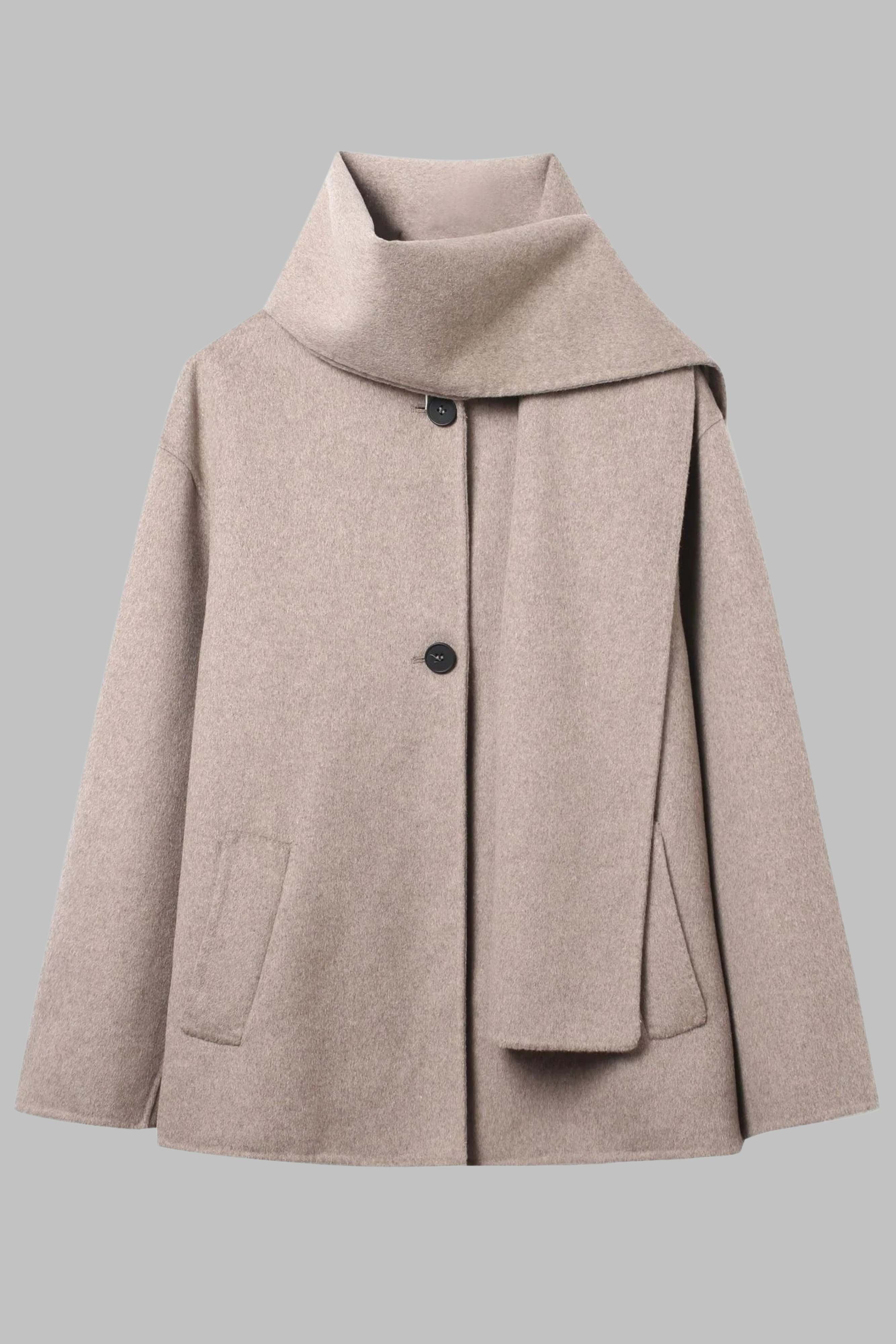 A relaxed wool-blend coat designed with a soft built-in scarf collar for effortless warmth. It features a clean front button design, long sleeves, and a loose casual fit that’s perfect for daily wear. Made from a warm, smooth wool-blend fabric, this coat gives you a cozy, stylish look without trying too hard — ideal for everyday layering.